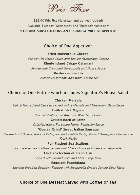 Welcome to Signatures - Waterbury, a hidden gem nestled in the heart of Waterbury, CT. Located at 29 Leavenworth St, this restaurant combines a cozy atmosphere with a diverse menu that highlights culinary excellence. The lunch offerings include refreshing Spinach, Lemon & Feta Salad and hearty Chicken Francaise, showcasing both creativity and comfort at great prices.